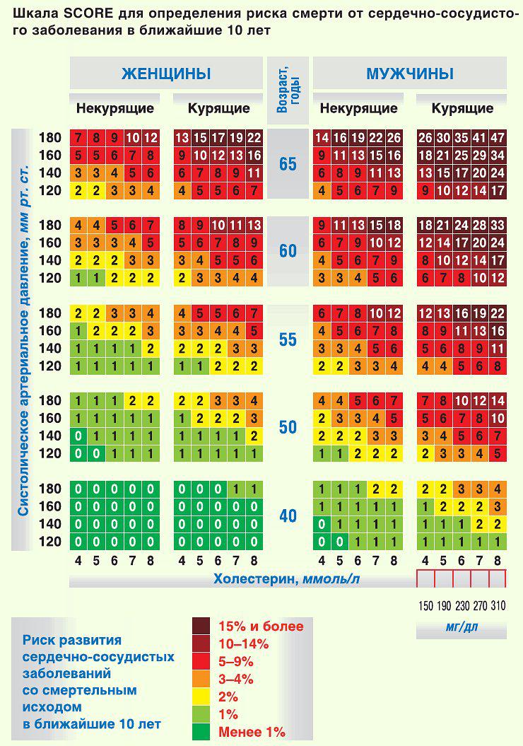Методика определения суммарного сердечно-сосудистого риска по шкале SCORE.