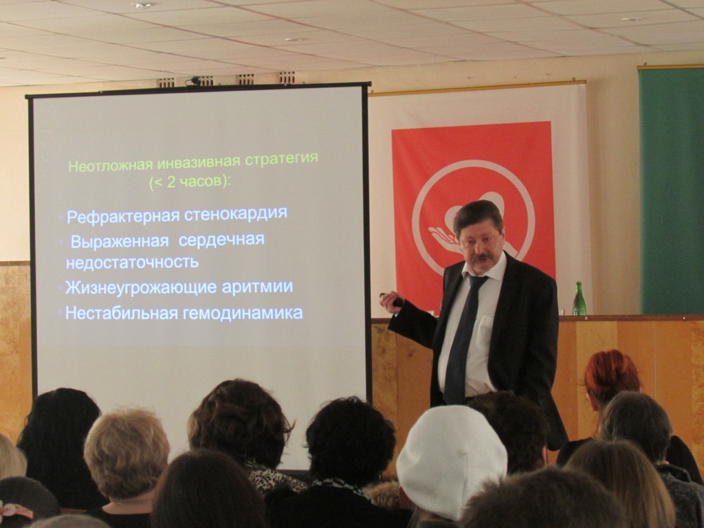 6 марта 2014 года в конференц-зале МУЗ Ейского района "ЦРБ" состоялась межрайонная школа по неотложной кардиологии. Выступили докладчики: 1) Д.А.Затейщиков, д.м.н., профессор кафедры кардиологии и общей терапии УНЦ Медицинского центра Управления делами Президента РФ, г. Москва. Тема лекции «Острый коронарный синдром» 2) Е.П.Панченко, д.м.н., профессор, руковод. лаборатории клинических проблем атеротромбоза института кардиологии им. ...